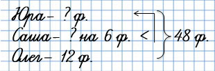 123. Саша, Юра и Олег вместе сделали для новогодних гирлянд 48 бумажных фонариков. Олег сделал 12 фонариков. Сколько фонариков сделал Саша, если он сделал на 6 фонариков меньше, чем Юра?