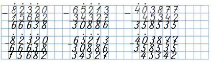 Вычитаю сотни тысяч: было 4 сот. тыс., но 1 сот. тыс. взяли при вычитании дес. тыс., осталось 3 сот. тыс. Пишу 3 под сот. тыс., так как разряд сотен тысяч в вычитаемом отсутствует.
