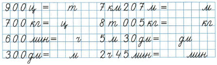 | 300 дм = 30 м | 2 ч 45 мин = 165 мин |