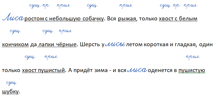 ___ ростом с небольшую собачку. Вся рыжая, только хвост с белым кончиком да лапки чёрные. Шерсть у ___ летом короткая и гладкая, один только хвост пушистый. А придёт зима - и вся ___ оденется в пушистую шубку.