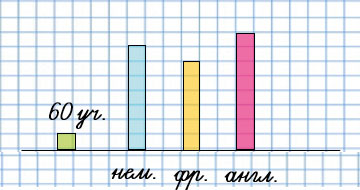 Используя решение задачи, построй на клетчатой бумаге диаграмму количества учеников, которые изучают немецкий. французский и английский языки. Масштаб выбери самостоятельно.