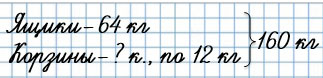2. Фермер собрал 160 кг вишни. Из них 64 кг вишни разложили в ящики, а остальную вишню разложили в корзины, по 12 кг в каждую. Сколько корзин заняли вишней?