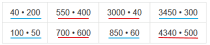 35. Разбей все выражения на 2 группы по числу нулей в произведении. Выражения одной группы подчеркни синим, а другой - красным карандашом.
