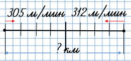1) 305 + 312 = 617 (м/мин) - скорость сближения.
