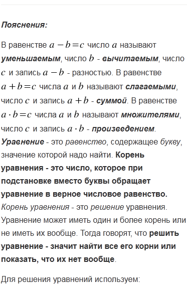 5. Правила нахождения неизвестного слагаемого, уменьшаемого, вычитаемого, множителя.
