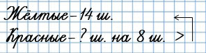 1) На ёлку повесили 14 жёлтых шаров, а красных - на 8 больше. Сколько красных шаров повесили на ёлку?