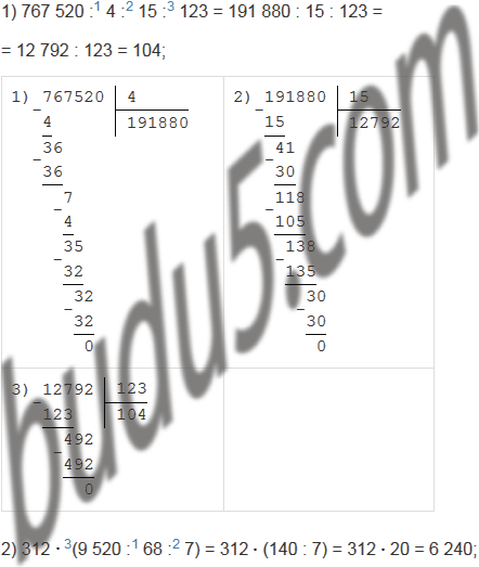 1) 767 520 : 4 : 15 : 123;         3) 286 208 : 86 : 16505;