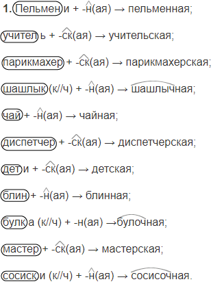 1. От данных слов с помощью суффиксов -ск- и -к- образуйте прилагательные. Какой суффикс присоединяется к одушевлённым существительным, а какой — к неодушевлённым?