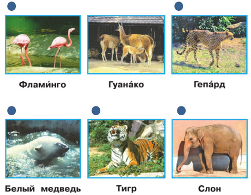 Вот некоторые животные Московского зоопарка. Кого из них вы видели? Отметьте фишками.