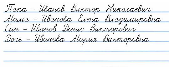 2. С помощью взрослых запиши имена, отчества, фамилии членов своей семьи.