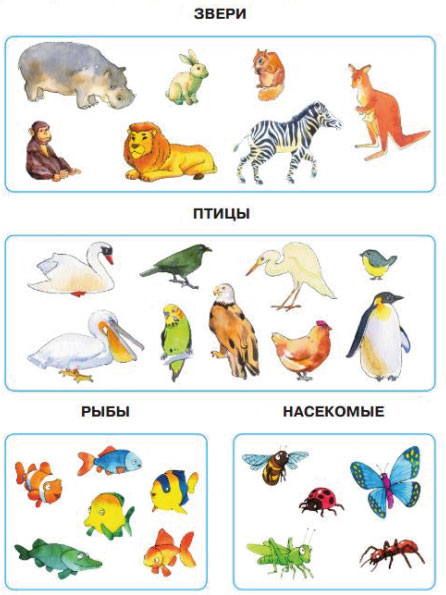 В обеих группах звери. Слева - домашние, справа - дикие.
