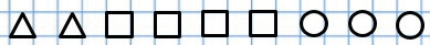3. Нарисуй в тетради два треугольника, четыре квадрата и три круга. Попробуй сосчитать, сколько всего фигур.