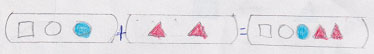 Складывали красную звезду, жёлтый треугольник и 2 зелёных круга. В результате-сумме те же фигуры, значит сложение выполнено верно.