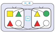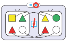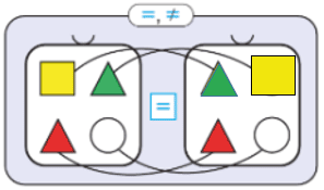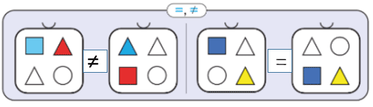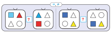 Красный квадрат, синий круг + жёлтый треугольник, зелёный круг = красный квадрат, синий круг, жёлтый треугольник, зелёный круг.