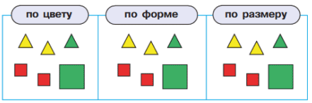 Свойства предметов - цвет, форма, размер, материал, количество, назначение, расположение, принадлежность к какой-либо группе и другие.