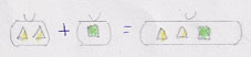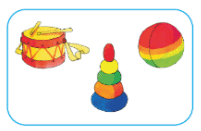 Слева от пирамидки - барабан. Справа от пирамидки - мяч. Слева от мяча - пирамидка и барабан. Справа от барабана - пирамидка и мяч. Посередине расположена пирамидка.