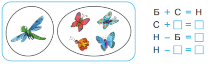 3. На какие части разбита группа насекомых (Н)? Что обозначают буквы Б и С? Дополни и запиши равенства:
