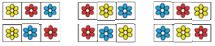4. Найди, какими способами можно посадить на грядке жёлтый, красный и синий цветки. Нарисуй их в тетради.
