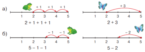 4. Как складывали и вычитали Лягушка, Бабочка? Сравни ответы. Как быстрее считать?