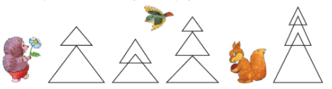 6. Сколько треугольников спряталось в каждой ёлочке? Нарисуй ёлочку из 4 треугольников.