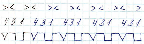 1. Догадайся, где спрятался знак "больше", а где - знак "меньше"?