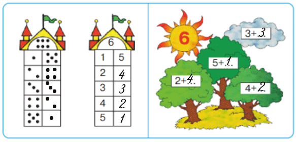 2. На какие части можно разбить число 6? Какие числа спрятались?