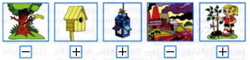 1. Отметь в квадратиках знаком "–" отрицательное воздействие человека на природу, а знаком "+" положительное воздействие.