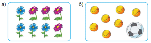 а) На рисунке 4 синих и 4 фиолетовых цветка.