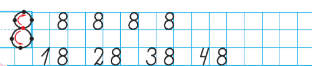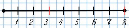 Количество звеньев синей ломаной - первое слагаемое, количество звеньев красной ломаной - второе слагаемое. Сумма всех выражений равна 8.