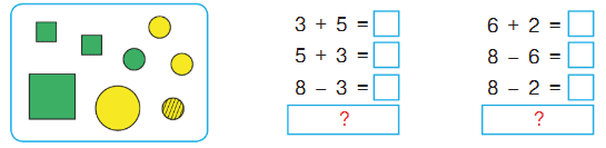 | 5 + 3 = 8 | 8 - 6 = 2 | 7 + 1 = 8 |