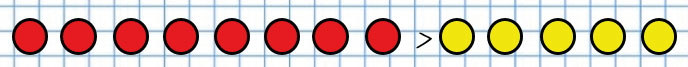 Соединяем картинки с числовыми выражениями. Предметы, которые были сначала, изображают белыми кружками, а те, которые вычли - зачёркивают.