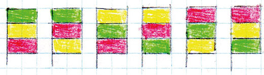 8. Закрась в тетради полоски каждого флажка тремя цветами - жёлтым, зелёным и красным. Все флажки должны быть разными.