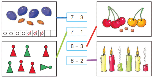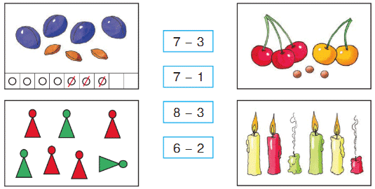 Схема означает, что было 7 слив, 3 съели, осталось 4 сливы.
