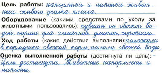 Во время практической работы, мы убираем у животных остатки старого корма, моем кормушки и кладём свежий корм. Улиткам – кусочки свежего яблока и банана, черепахе – специальный корм, листья салата. А хомячкам мы кладём пшеницу, морковь, листья салата. Затем моем поилки и наливаем свежую воду.