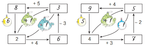 5. Расскажи, что нарисовано. Задай вопрос со словом "сколько?". Запиши выражение и ответь на свой вопрос.