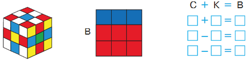 1. На рисунке показаны кубик Рубика и одна из его граней. Что обозначают буквы С, К, В? Какие равенства можно составить? Объясни их смысл.