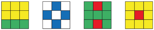 4) 8 + 1 = 9 (всего клеток жёлтых и красных)