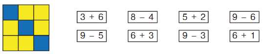 3 + 6 = 9 (всего клеток зелёных и жёлтых)