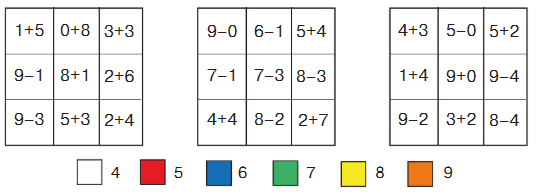 Каждое значение суммы или разности соответствует цвету, данному ниже.
