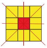 б) Для каждой грани найди линии-"зеркала". Сколько таких линий ты сможешь найти?