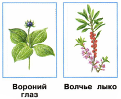 3. Определяем названия ядовитых ягод и грибов. Располагаем рисунки в соответствующих рамках.