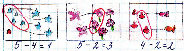 На сколько больше? На сколько меньше? Дополни и запиши равенства: