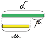 2) Большая полоска - буква б, меньшая полоска - буква м, разность - буква м.
