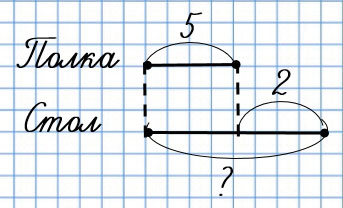 б) На полке 5 книг. Их на 2 больше, чем на столе. Сколько книг на столе?