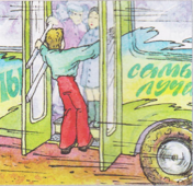 1. Не расталкивайте пассажиров в дверях автобуса и в самом автобусе.