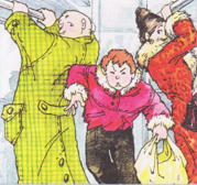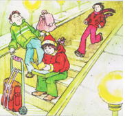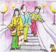 На этом рисунке мальчик расталкивает пассажиров. Это не по правилам.