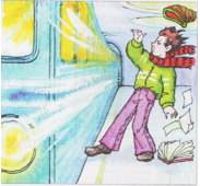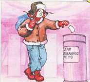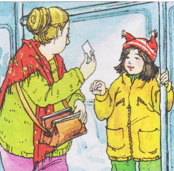 На этом рисунке мальчик бросает проездной билет после поездки в мусорный бак. Это правильно!