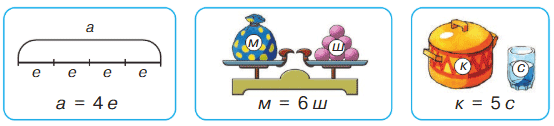 а) 1) Выбранная мерка е содержится в отрезке а 4 раза.