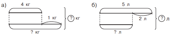 б) Канистра вместимостью 5 л, а бутылка на 2 л меньше. Каков объём канистры и бутылки вместе?