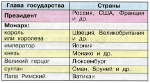 1. С помощью таблицы определяем, кто является главой государства в разных странах.